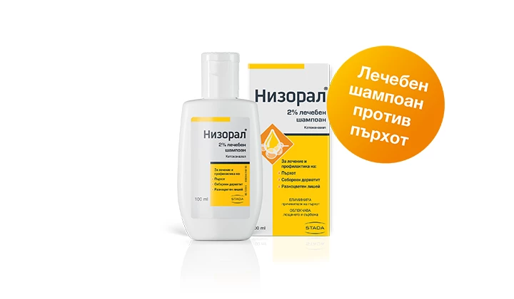 Низорал® лечебен шампоан съдържа активната съставка кетоконазол, която ефективно лекува пърхота, защото се бори директно с гъбичките, които го причиняват, и облекчава лющенето и сърбежа.