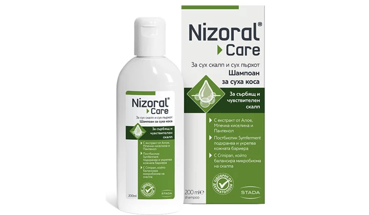 Низорал Кеър ежедневен шампоан за сух пърхот и сух скалп съдържа Crinipan, постбиотична технология Symferment, има добавени екстракти от Алое Вера, пантенол и млечна киселина, които хидратират в дълбочина и изглаждат кожата на скалпа.